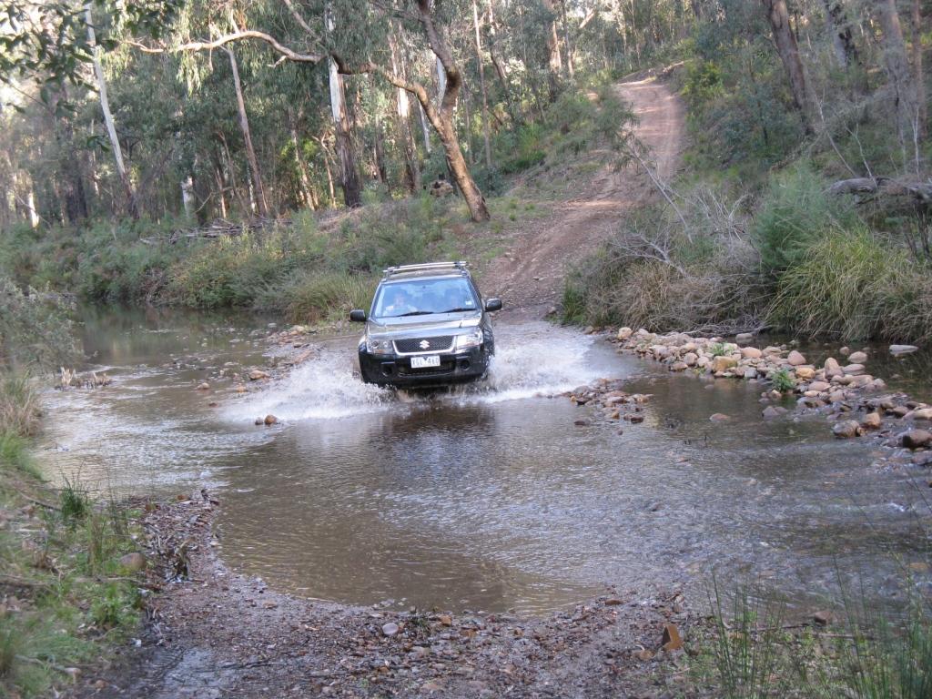 The Scrubby Creek Track crossing. Whose vehicle does Spot think is the better? I know which is quieter and allows more enjoyment of the bush, wildlife, etc.