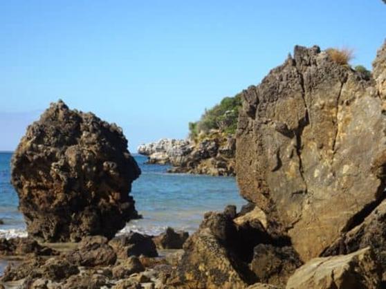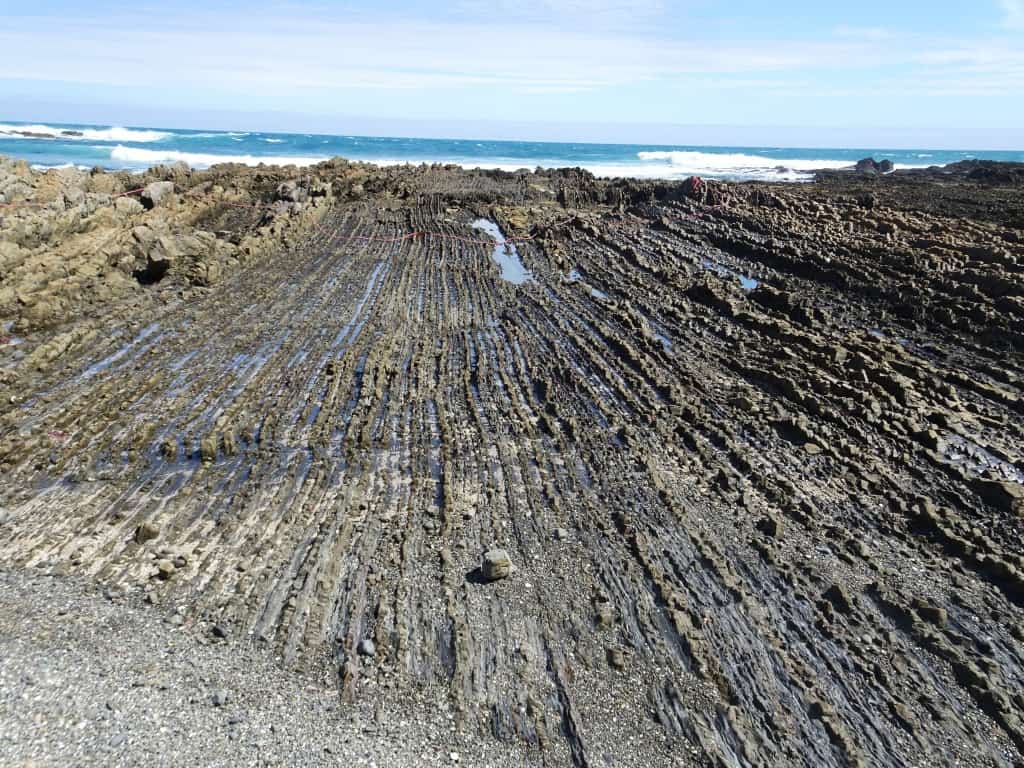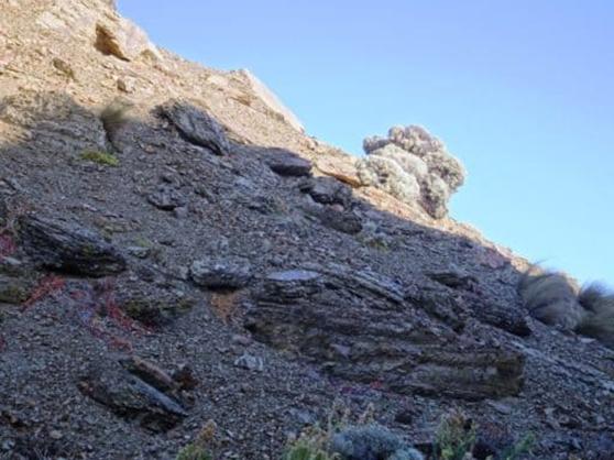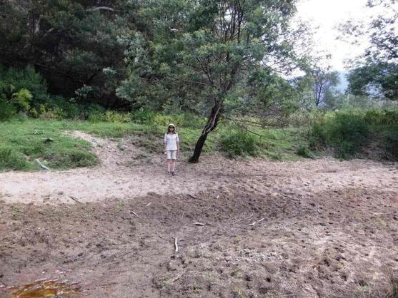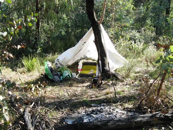 About a kilometre below the Scrubby Creek Track crossing you will see a clearing on your right, then you will sweep around a  bend and see these 'Dragon's Teeth' in the river. the last camp is on your right.
