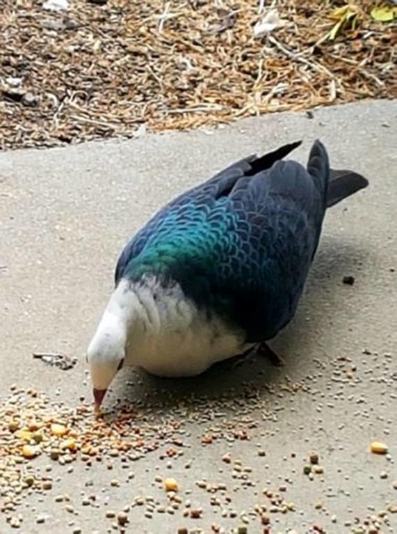 This wonderful new bird has turned up in della's garden from Nth Qld: It is a White headed Pigeon, a resident of the rainforests three. It is so beautiful. We hope it will stay and breed! 30 X zoom: