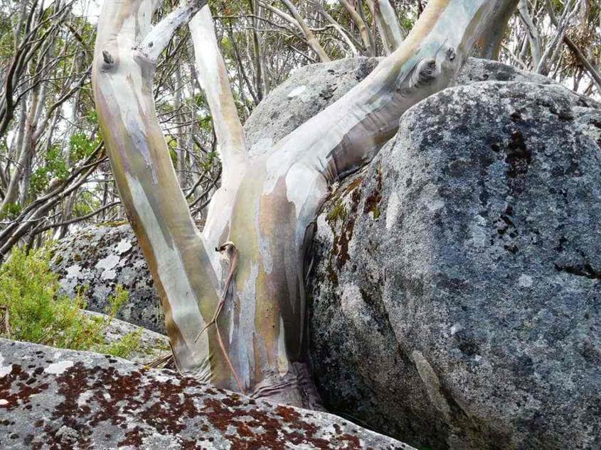 The flat where we camped on the first night i used to call 'Bellbird Flat' on account of the myriad Bell Miners whose piercing chimes followed you as you meandered along it. the terrible fires of 2007-9 pretty much wiped them (and a zillion other critters) off the map. it was delightful to find a colony of them on the right bank above Scrubby Creek. Here is a sample of their work:
