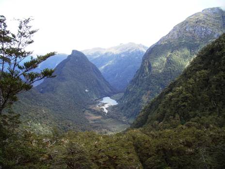 View from above Loch Marie looking down the Seaforth to Dusky Sound