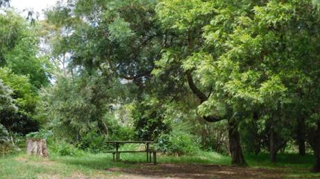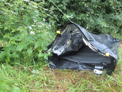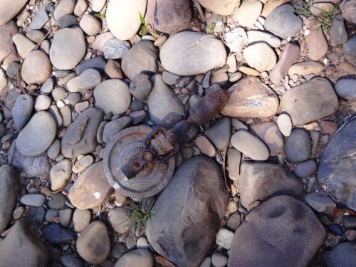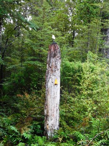 Saddle. Sign reads AWT 3km thataway! Skull of lost walker...