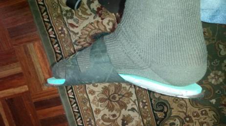 A more elegantly shod Cindie had left her shoe: cold tootsies!