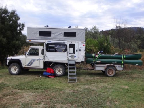 Our Landie has 2” lift, twin diff locks and winch so it will go most anywhere – and has! (I intend to install http://www.secondair.com.au/why.htm to extend its range even further). I may also add a side awning for socialising and a small rear one for the shower/toilet, etc. I have purchased four under tray boxes which will contain wheel chains, Alpacka rafts https://alpackarafts.com/ etc. These <2 kg rafts (suitable for Grade 3+ rapids) are a great way to access remote country. I have the Fiord Explorer which they also describe as a ‘moose boat’ for obvious reasons! If you have a take-down rifle (as I do) it fits inside my pack liner bag; otherwise Aloksak http://www.loksak.com/products/aloksak make a waterproof rifle bag.