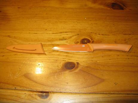 24/12/2013: As mentioned in an earlier post 04/11/2013, I have ordered a heap of ‘hiking’ knives which might best be used to split wet firewood to create dry kindling & ‘excelsior’, but yesterday found THIS ‘Scanpan’one on sale in Aussie Disposals for $5.95! Weighing a mere 47 grams (including a VERY secure sheath) it will be hard to beat for the purpose. It would also make an excellent kitchen or utility knife maybe as a Xmas gift: