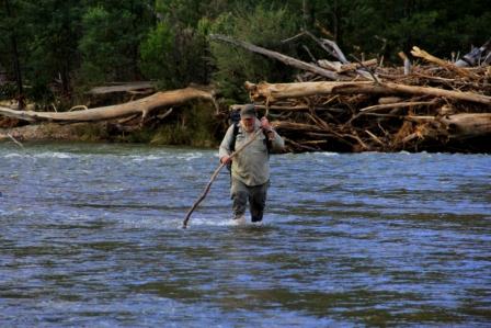 Steve had surveyed the canoeing route on Google Earth and had seen some of the river on previous (hunting/hiking) expeditions. Google Earth LIES. There ARE much worse rapids than its satellite sees. He had thought that he would always be able to SEE them coming and that it would be a relatively simple matter to walk around them. He had not counted on some killer rapids having vertical river banks upstream of them. And the strength of the river (even though) the river height was NOT high was MUCH greater than he anticipated. Once when walking in water a little over ankle deep he and his boat and pack were bowled over several times by the sheer force of the water. Therefore being able to get out upstream of deadly rapids was more questionable than it appeared from orbit. Fortunately it IS possible to climb 20 ft vertically up tree roots hanging into the river – otherwise he would not be telling this story. There WERE some immensely beautiful and pleasurable stretches however. And many beautiful wild red deer. And lots of trout for the anglers amongst you.