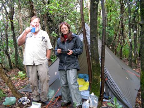 April saw Irralee and Steve back in Fiordland. Thanks to Mr Rudd’s generous bushfire money, Steve was able to purchase an Alpacka pack raft (which he had lusted after for years – such strange lusts – check it out on the web; it’s really cool) with which he became the first person to canoe the Seaforth River there. Look on Google Earth. First there was a boat trip, a three and a half day hike in from Lake Hauroko: up the Hauroko Burn, past Lake Roe (spectacular scenery), a LONG way DOWN to Loch Marie, paddling across Loch Marie unsuccessfully avoiding the many snags (scary), another couple of hours’ walk (VERY up and down) through a gigantic slip, hearing the river really roaring below (as it cascades out of the giant slip which created Loch Marie) and then launching at the Bishop Burn. Moose sign here and there for those who have been following this story for years. Back again next year? Hope so.
